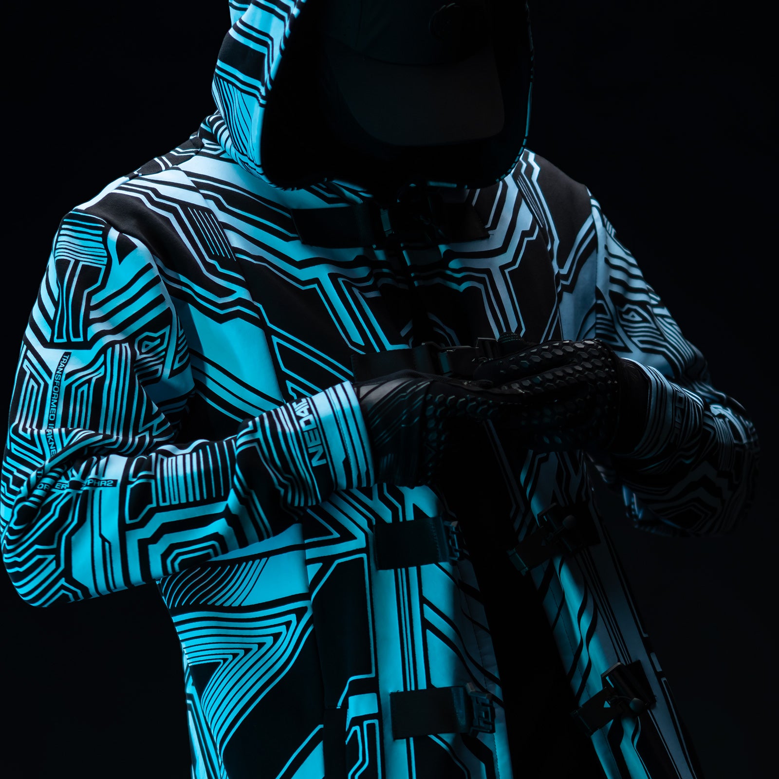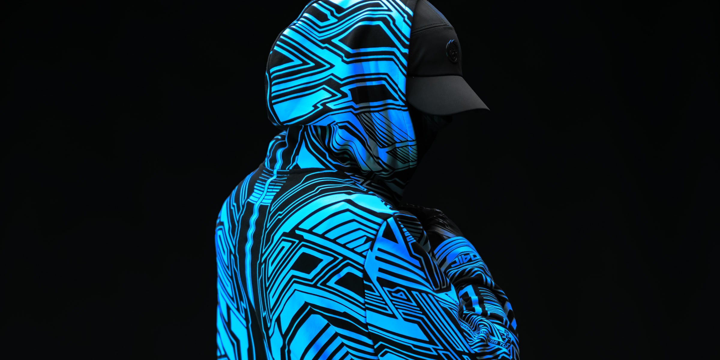 The ZYPHR 2 mantle is a precision-cut artifact in the neo-tribal canon...symmetrical, severe, and unrelenting. This upgraded edition features a reengineered glow-in-the-dark ink system that pulses with phosphorescent blue energy.